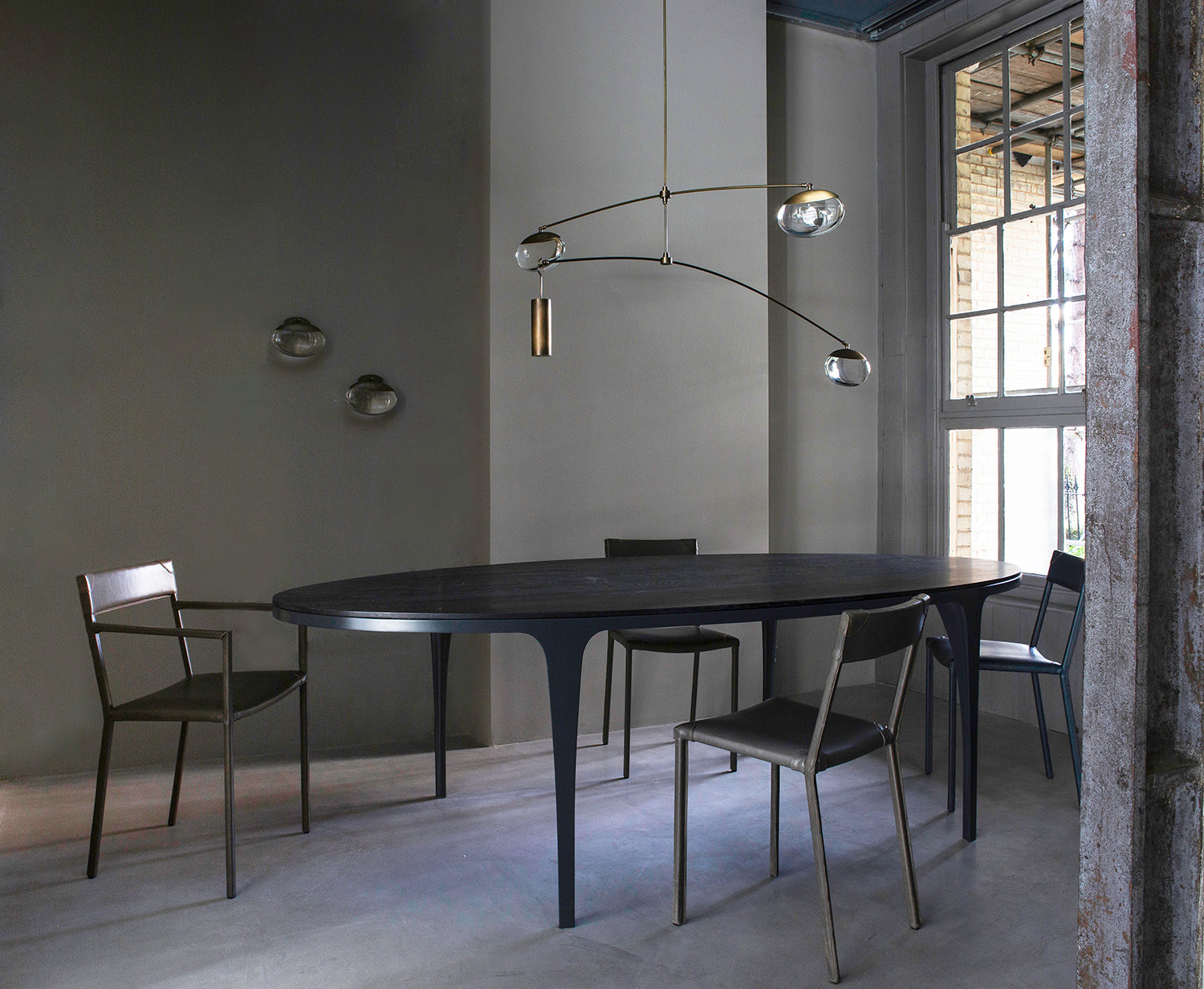 solid glass drops illuminated by LED, antique brass, blackened or satin nickel cap with matching arm, stem and canopy